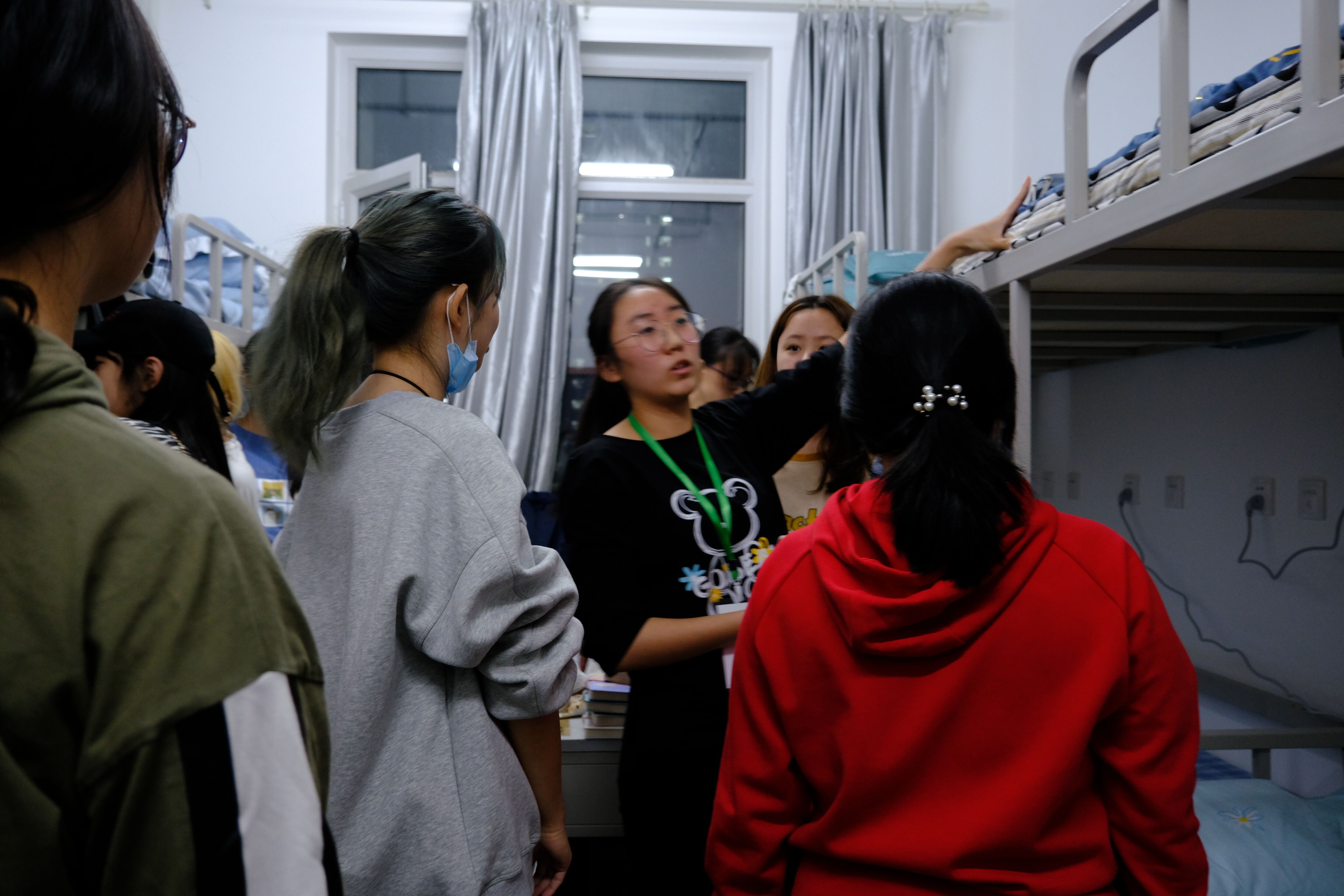 According to the requirements of epidemic prevention and control of the University, the college divided the freshmen's dormitories into four groups and carried out business training for all freshmen's dormitories in the dormitory building. According to the school's internal affairs standards, the student cadres explained in detail the folding method and placement of quilts in the freshmen's dormitory, bed arrangement, standardized placement of daily necessities and shoes, and the overall indoor cleanliness, and put forward clear requirements.