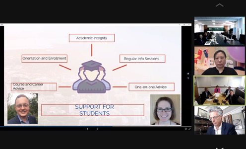 Brett Berquist, director of the International Department of the University ofAuckland, and Liu Zhiming,DeanofAulincollege, respectively reported important information of the two universities during the epidemic period to the Joint Management Committee on behalf of the two universities. Brett Berquist introduces the situation of COVID-19 inAucklandand the love of Auckland universityinternational students, and once again thanksNEFUfor its strong support for CLC learning center. Liu Zhiming introduced the policies of the Ministry of education of China, the teaching management ofNortheast Forestry UniversityandAulincollege, and the work ofNortheast Forestry UniversityCLC learning center during the epidemic period. Sebastian link, deputy director of the Department of Sciences at the University ofAuckland, introduced in detail the master's program of the "3 + 2" training mode of the University.