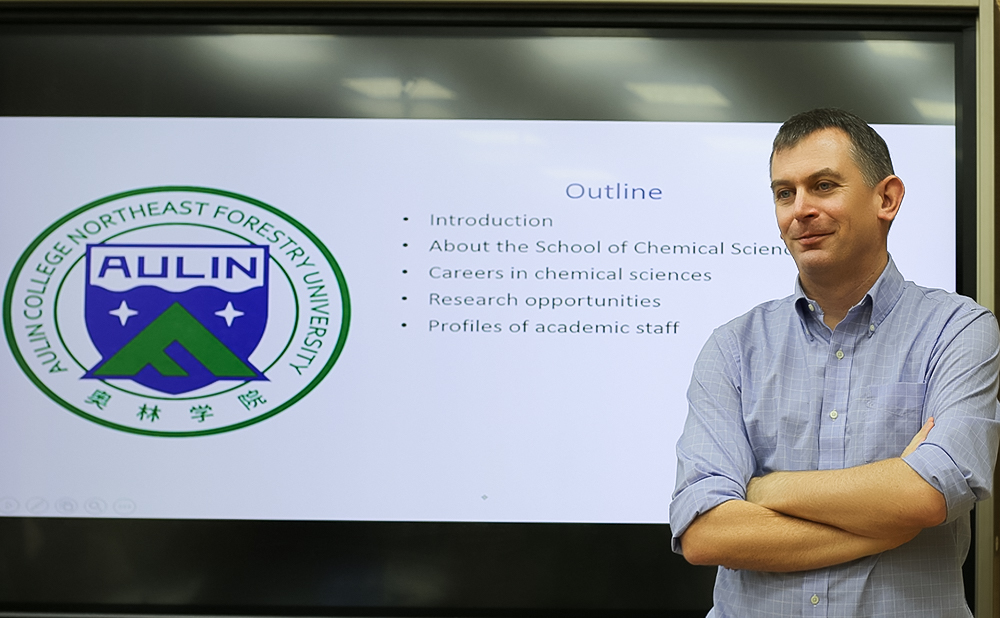 At 9:40 in the morning, Liu Zhiming, the Dean of the Aulin College, made a presentation on the basic situation of the Aulin College, majors, teachers, teaching environment, what students can learn, and answered the questions of general concern. The word Aulin is composed of Au, a part from the University of Auckland, and lin, a part of Donglin, which is the Chinese version of the Northeast Forestry University. The Chinese version of the word Aulin represents sound cooperation and innovation of the two parties, and expresses the best wish of the Aulin College to its students that they will become gentlemen in the future.