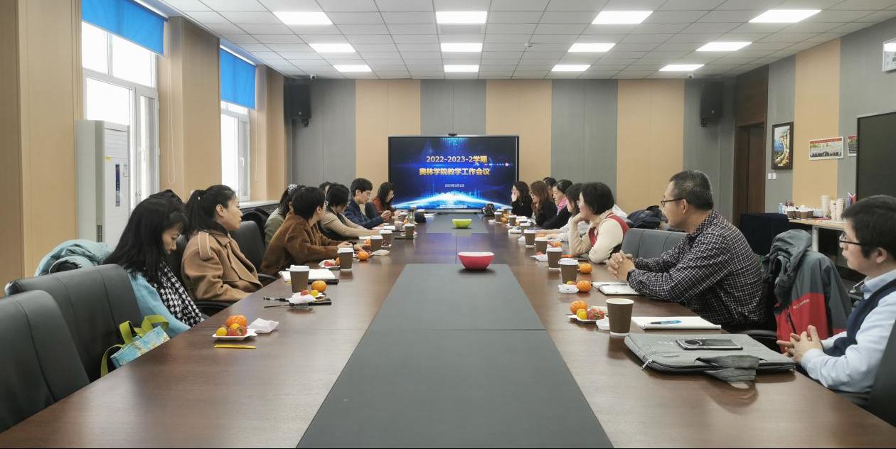 In order to better enhance communication between the college and the teaching staff, continuously optimize and improve the teaching methods of foreign courses in Aulin College, and improve the teaching effect. On the afternoon of March 1st, Aulin College held a teaching work meeting for the second semester of the 2022-2023 academic year in Conference Room 609. Vice Dean of Teaching Zhao Lihua, Teacher An Tiezhu, the head of the teaching supervision group, the heads of each major, the co-teachers of foreign courses this semester, and relevant personnel from the college's teaching management section attended the meeting. The meeting was chaired by Vice President Zhao Lihua.