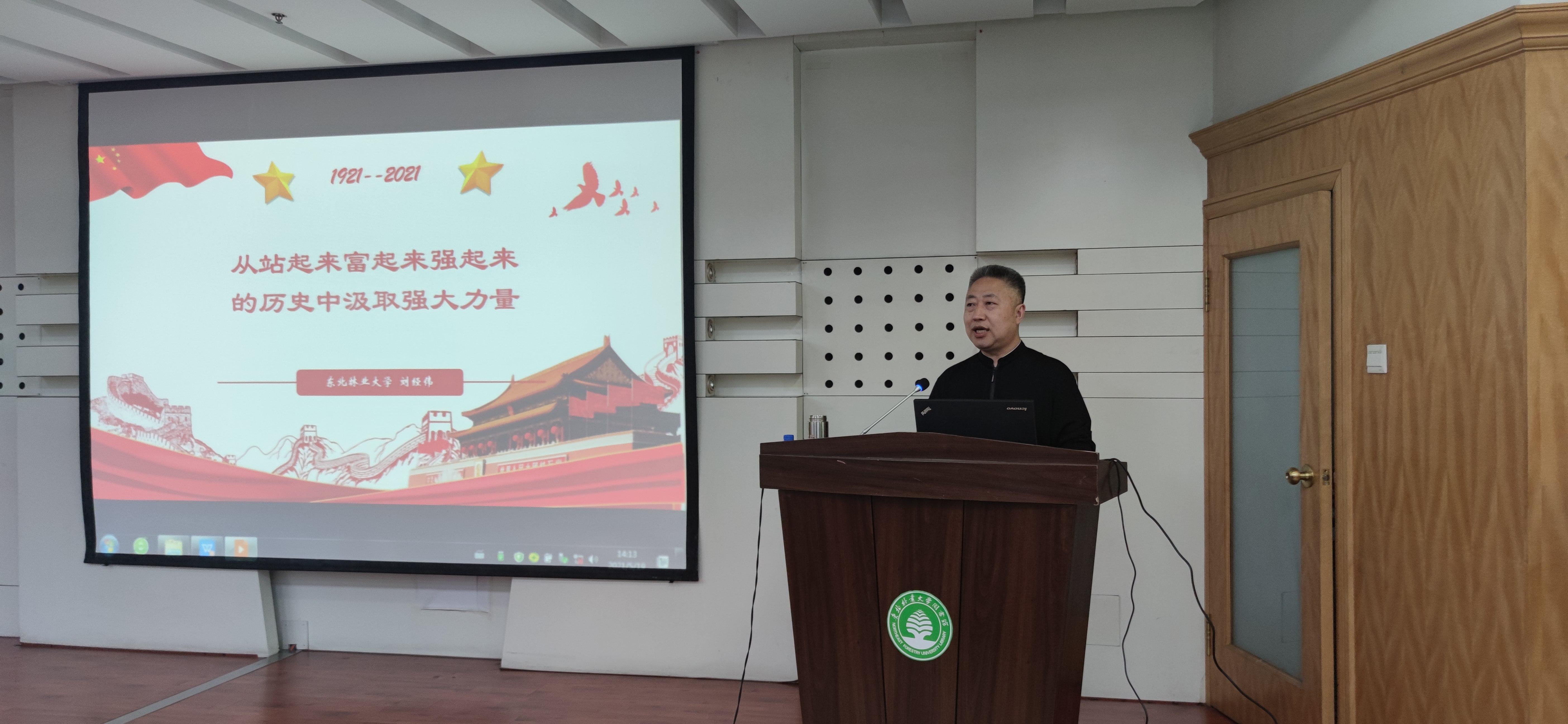 为贯彻落实习近平总书记在党史教育动员大会上的重要讲话精神,深入推进党史学习教育,进一步引导党员干部、教职工学史明理、学史增信、学史崇德、学史力行,5月19日下午在图书馆A楼多功能厅,图书馆、国际交流学院、奥林学院3个基层党组织联合举办党史学习教育宣讲报告会。特别邀请学校党史学习教育宣讲团团长、马克思主义学院党委书记刘经纬做题为《从站起来富起来强起来的历史中汲取强大精神力量》宣讲报告。三个单位的领导班子成员、全体党员、教职工参加了此次学习。报告会由图书馆党总支书记魏晓慧主持。
