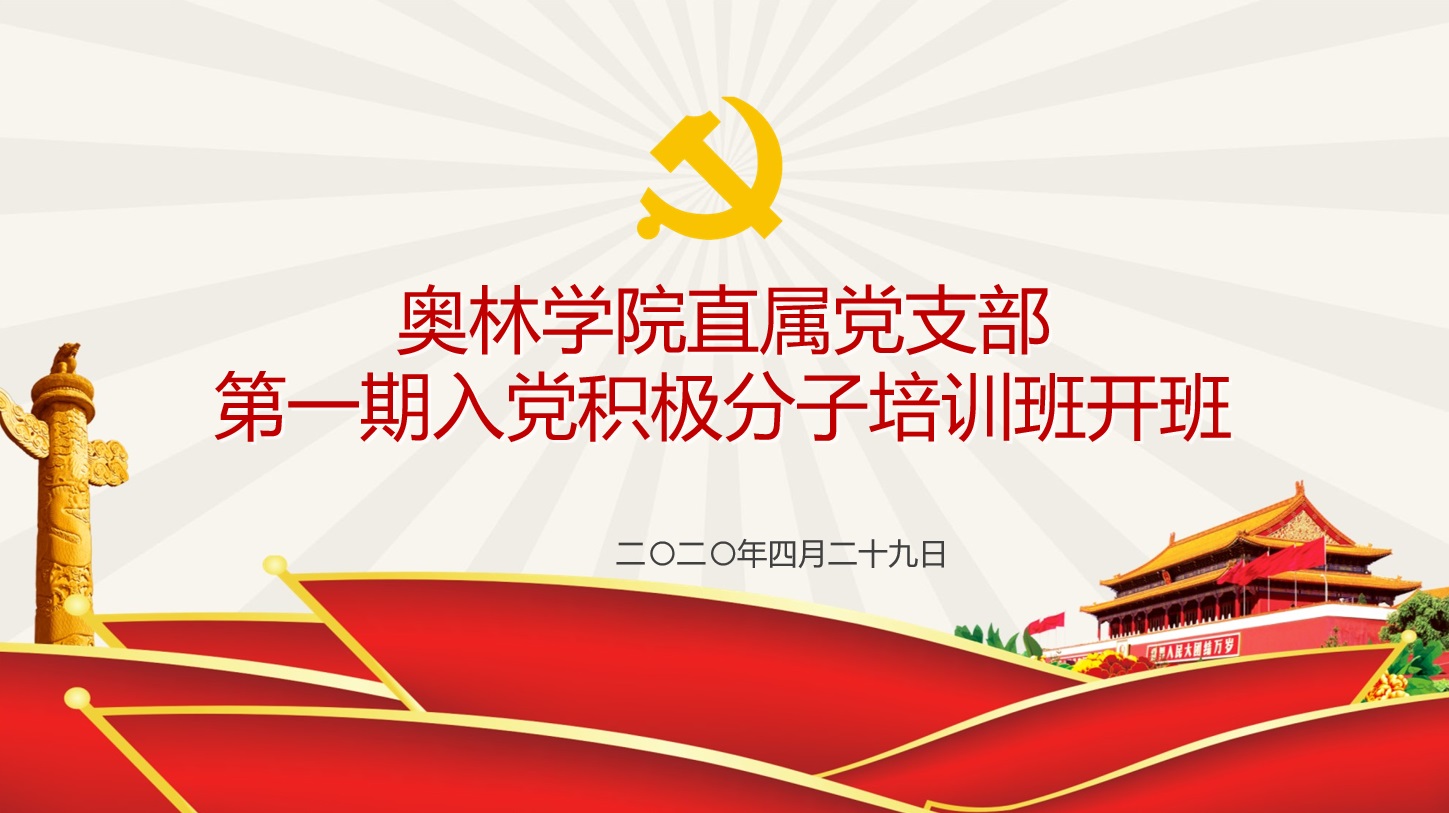 为深入学习贯彻习近平新时代中国特色社会主义思想,大力弘扬新时代爱国主义精神,根据《中国共产党党员教育管理工作条例》和《中共东北林业大学委员会发展党员工作实施细则》有关工作要求,结合防控疫情期间相关规定,4月29日,奥林学院直属党支部通过钉钉平台举办了第一期入党积极分子培训班开班仪式。奥林学院直属党支部书记于洋、奥林学院院长刘志明参加了开班仪式,学院团委书记、培训班班主任刘洪良主持。