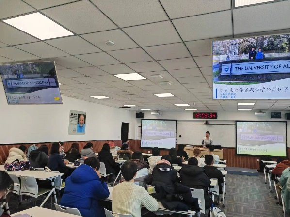 两位主讲老师还邀请了2019级的学长孙家翔和刘嘉琪向同学们传授经验,他们强调了规划时间的重要性,本次“奥克兰大学短期访学经验分享会”让同学们对奥克兰大学的学习生活有了进一步的了解,明确了自己未来的规划和努力目标。