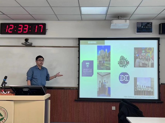 王鹏超老师则是根据自身带队参加IGEM比赛的经历,详谈了外国教育模式的特点。他表示“国外更侧重思辨和逻辑能力的训练,国内更侧重知识和技能的训练。”