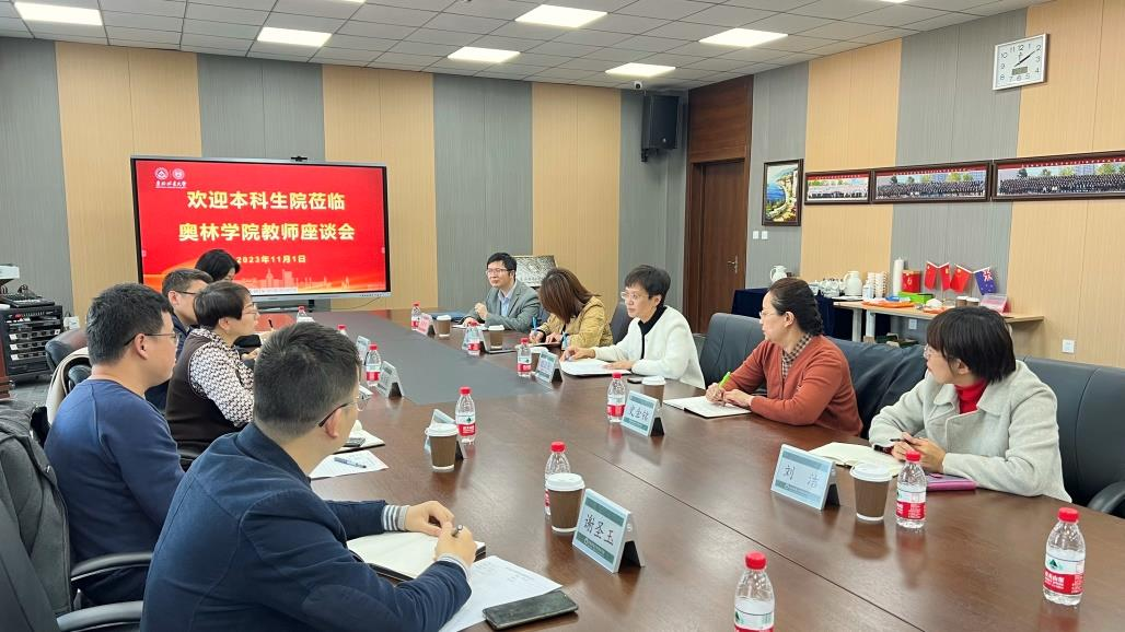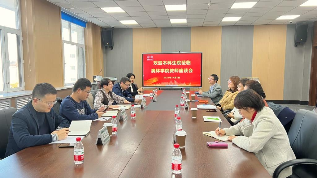 2023年11月1日下午,奥林学院2023-2024-1学期教师座谈会在学院609会议室召开,本科生院副院长兼质量管理与评估中心主任张佳薇带领本科生院教务管理、考试中心、项目管理、创新创业等部门的负责人一行五人莅临本次座谈会,听取教师对学校和奥林学院本科生教育教学、人才培养等方面的意见建议。学院各专业负责人和教学管理办公室工作人员参会。座谈会由奥林学院赵丽花副院长主持。
