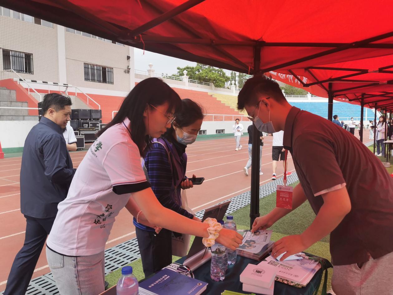 学院还在田径场设置展台,为前来咨询的家长多角度解决疑问。