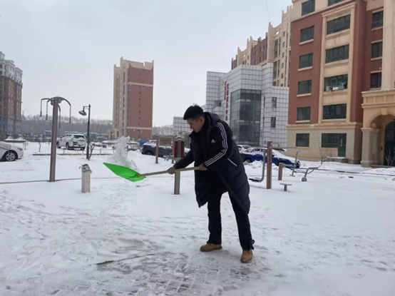 姜轶伦积极响应奥林学院的号召,于家乡开展本次实践活动。低碳理念的核心在于加强研发和推广节能技术、环保技术、低碳能源技术,全民参与也是其中重要一项,下到小朋友上到老年人,全民都在参与。姜轶伦也积极响应号召参加到家乡建设中去,经过几日哈尔滨大雪的沉积,社区已经白雪皑皑,姜轶伦打算从小事做起,清扫积雪,促进城乡卫生环境条件明显改变,营造干净、整洁、绿色的社区活动中心,使绿色低碳变成实际!于是姜轶伦在社区工作人员带领下穿上社区的统一服饰开始了清雪工作。