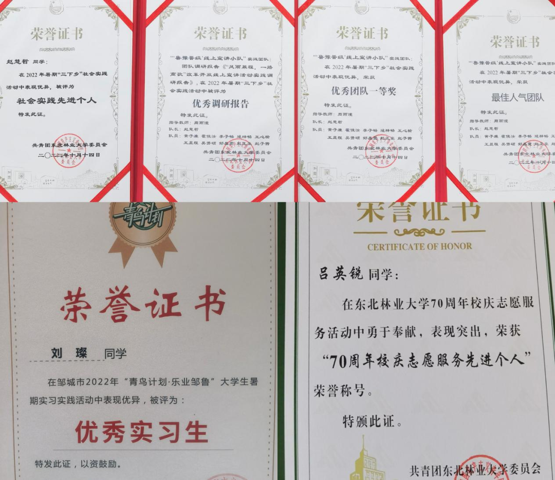 团支部成员积极参与各项社会实践、志愿活动,在各时期、各岗位贡献了自己的青春力量。在2022年暑期“三下乡”社会实践活动中,支部成员所带领的“鲁豫晋级”线上宣讲小队获最佳人气奖、一等奖;支部内多名成员获“70周年校庆志愿服务先进个人”、青鸟计划“优秀实习生”等荣誉称号。
