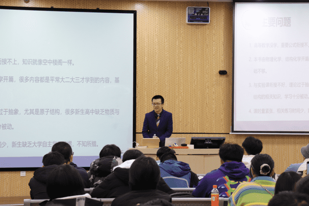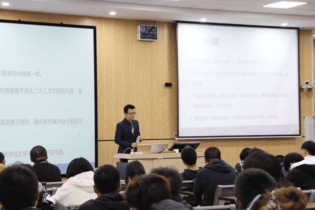 李麟学长先对现代化学基础这门学科进行了简单介绍,并且介绍了化学专业的难度和未来就业发展方向。然后又把同学们所欠缺的化学知识进行了补充,介绍了玻义尔定律,元素周期率和原子结构进行了讲解,将未来可能会遇到的化学例题进行了系统性的预习。