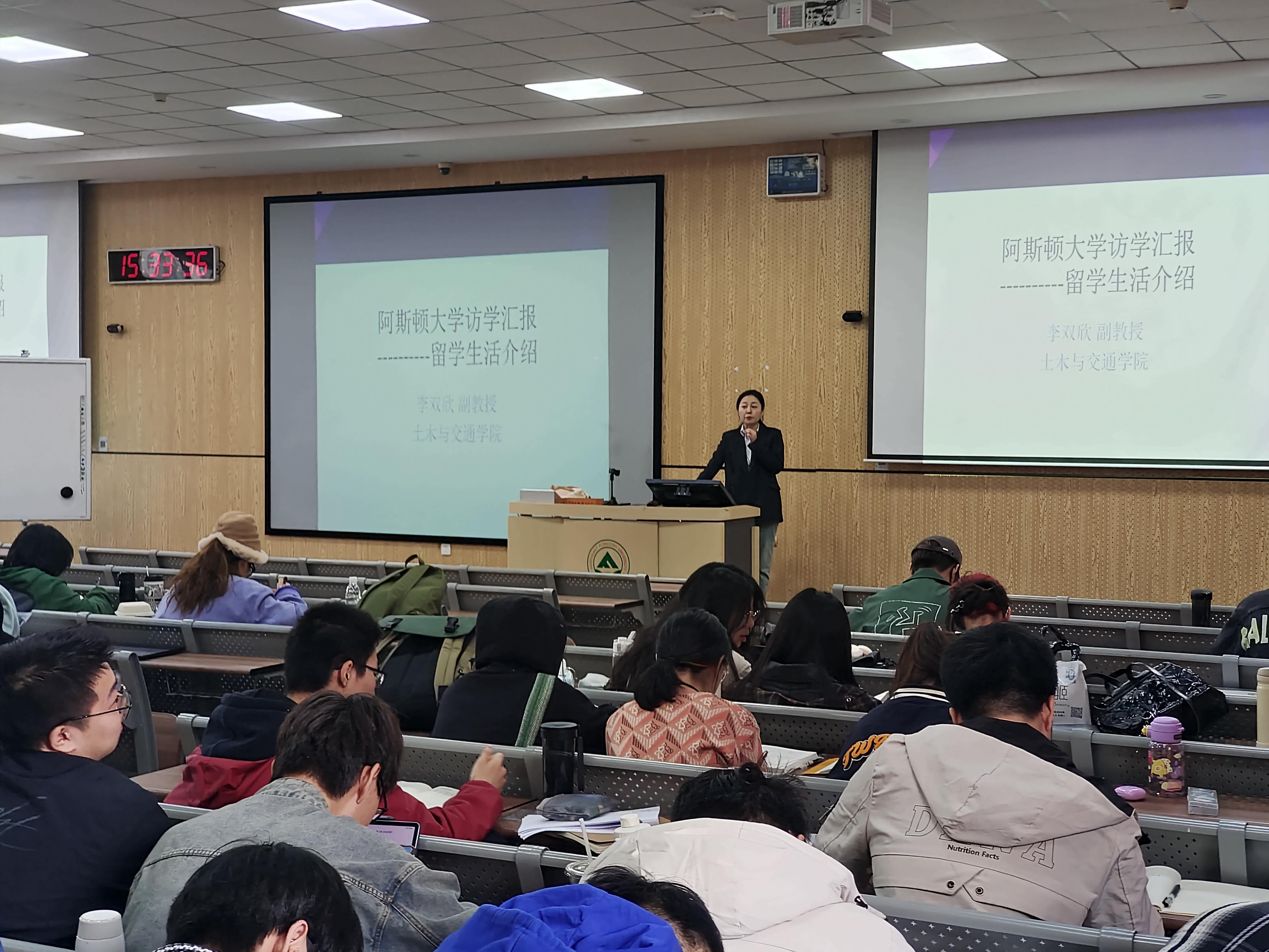 4月16日,李双欣老师在奥林401,结合自己在阿斯顿访学的见闻,从以下几个方面向2022级学生介绍了阿斯顿大学。(1)学习生活环境,功能区布局合理,基础设施齐全,超市等生活便利设施应有尽有,老师办公室可视化,方便学生随时寻求帮助。生活区别具特色,环境优越,学校周边有配套设施齐全公寓出租,学生可以根据个人需求选择租房或住宿。(2)城市剪影,伯明翰是个活力四射的城市,饮食丰富多样,有很多中国连锁餐饮品牌店。(3)医疗交通,医疗设施齐全,学生享受免费医疗服务,且医疗咨询过程全程保密,充分保障我们学生健康和隐私安全。学校周边交通便利,火车和长途巴士等公共交通工具四通八达,方便学生出行。