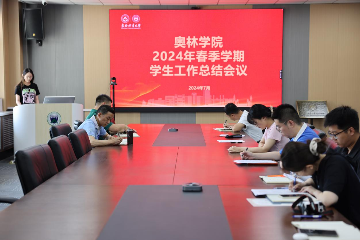 为了进一步强化学院辅导员队伍建设,夯实学生工作基础,提升辅导员工作效率与成果,持续激发辅导员队伍的活力与创新能力,深化育人工作内涵,促进学生思想政治工作迈向高质量发展新阶段,奥林学院于7月19日在609会议室召开2024年春季学期学生工作总结会议,学院党委书记艾曦锋、党委副书记兼副院长罗伟以及学院全体辅导员老师参加会议。