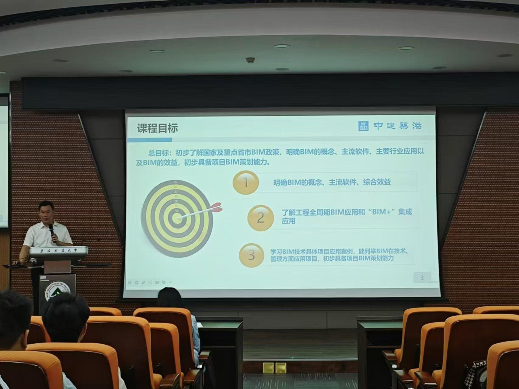 中建筑港集团有限公司设计研究院BIM项目负责人崔恩鹏高级工程师为2023级工程管理(合作办学)专业进行BIM for Construction课程的tutorial授课,从智能建造技术发展、智能建造政策分析、BIM+智能建造协同应用及其在智能建造过程中试点、推进、普及情况等,对运用BIM技术强化建筑项目的设计质量、施工效率、项目安全管理、运营维护效率以及全生命周期管理方面的知识进行专业讲解和重点阐释。