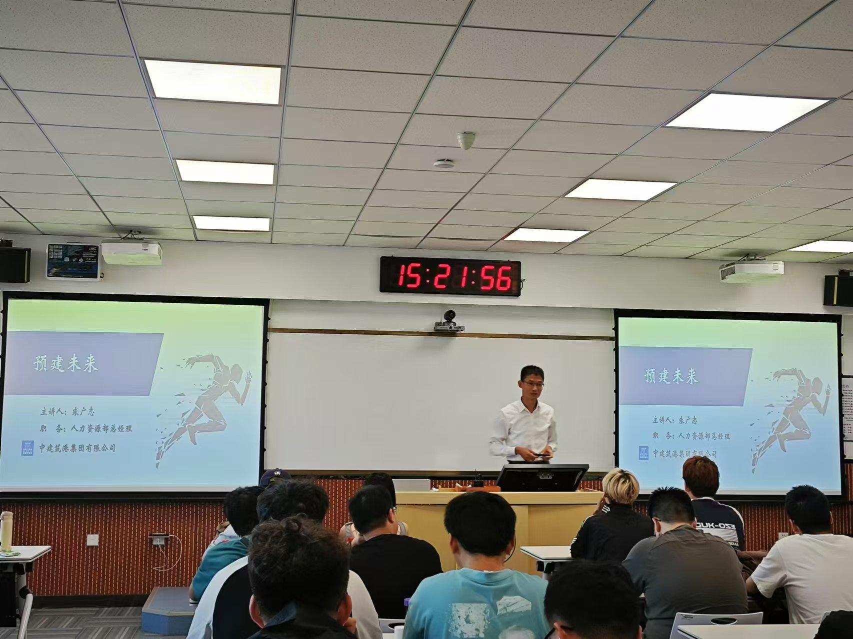 2024年9月11日下午3点30分,中建筑港集团有限公司人力资源部朱广志总经理为2022级工程管理(合作办学)专业学生进行职业规划讲座,通过结合目前工程管理领域国内外就业形势及发展趋势、帮助学生分析未来就业前景及就业所需技能和素质,鼓励学生做好职业生涯规划,全面提高综合素质和竞争力。