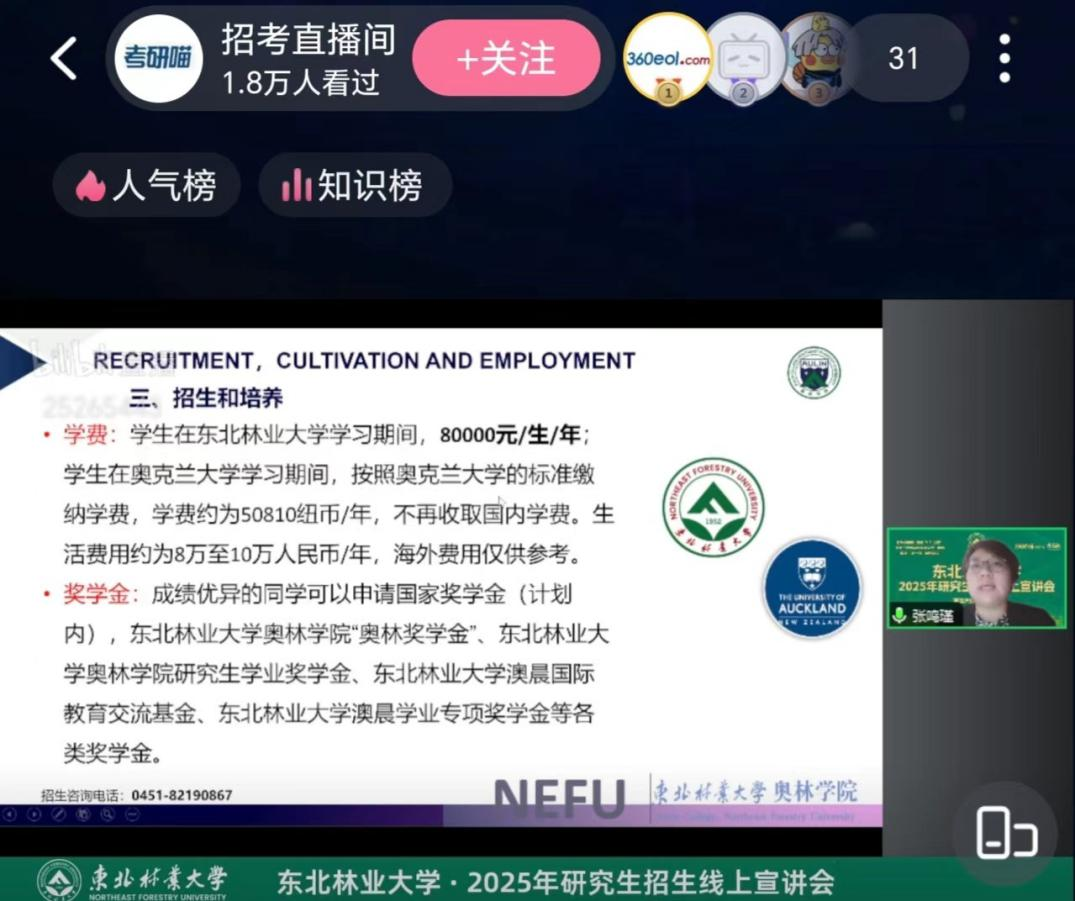 在学校研究生院的指导和支持下,东北林业大学2025年研究生招生线上宣讲会奥林学院(生态学)专场于2024年9月23日晚7点准时开播,累计在线考生及家长六万余人。