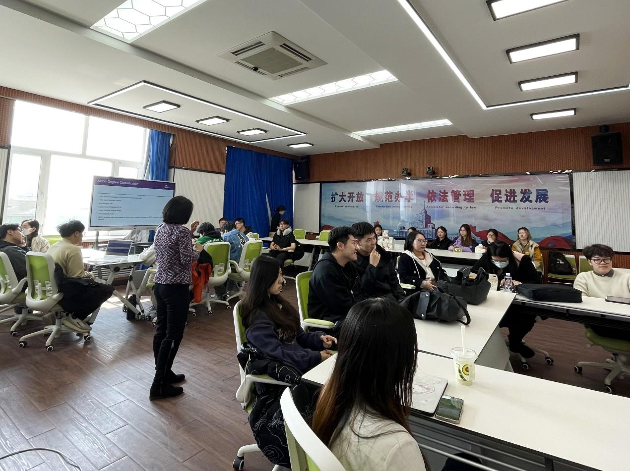 在4月8日的行前答疑会上,Junying JIA博士针对课程衔接、学术要求、生活适应等核心关注问题,以历届学生案例解析阿斯顿大学的成绩评定规则,出国后在阿斯顿大学总成绩计算依据为25% 基于东林第三年阿斯顿大学教授的 4 门专业课成绩,75% 依据阿斯顿大学最后一年课程学习表现,这样,更有利于东林学生在阿斯顿大学毕业后继续申请并获得国际QS排名前100位高校读研的offer,尤其是英国高校优先录取提前在英国学习的本科生进入硕士研究生阶段学习。她特别指出,软实力提升是隐形加分项,专业能力与职场竞争力的双重成长可有效缓解学生对课程难度与就业前景的担忧。