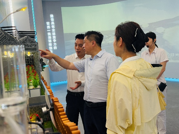 李海波现场详解企业发展理念和发展战略:以生态环保为发展理念,坚持“真信、真干、真诚”,国电投清洁能源装机占比超72%,位列全球首位。陵水项目投资4亿元,集成光伏、储能、智能微网等前沿技术,已成为海南综合能源标杆。”他特别提到与清华大学的联合研发项目:“我们正将‘水光互补’技术延伸至农业领域,未来在试验田引入无土栽培与智慧灌溉系统,需要高校的生态学科支撑。”
