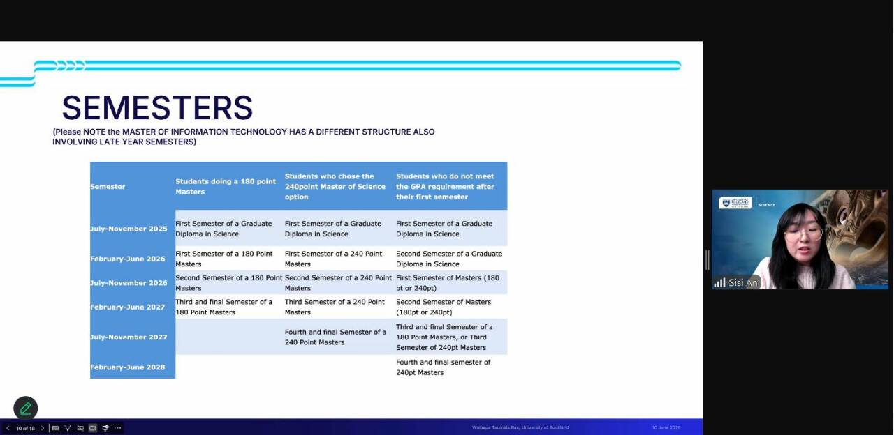 ·无缝衔接第一步:奥克兰大学Kevin老师首先介绍了跨国教育团队的成员,他们将是同学们未来在奥大读书过程中最坚实的依靠。Kevin老师详细解读了至关重要的迎新周 (O-week)安排,包括开课时间(7月21日)、联合迎新会时间(7月17日)、抵达时间(尽量提前一周)和活动参与等关键建议,确保学生落地能较快融入新环境。并且提供了住宿选择攻略及机场接机预订指南,为同学们解决了“住”与“行”的后顾之忧。
