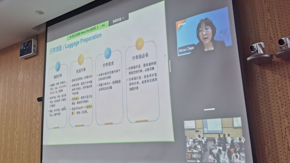 ·行前万事通:最后,Mesa老师结合丰富经验,从行前必备的航班预定建议、行李准备清单(文件、物品、财务)、银行开户建议、最新的新西兰入境政策要点等重要事项,到中新两国时差、临行前一天需要完成的二次检查、看病就医的详细步骤等日常生活小细节,都条理清晰地进行了完整的梳理,并着重强调了海外学习生活的安全守则,内容细致入微,极具参考价值。活动尾声,Mesa老师更是通过一个有趣的互动小测验帮助同学们进一步巩固了关键知识点,并收集了同学们的宝贵建议。
