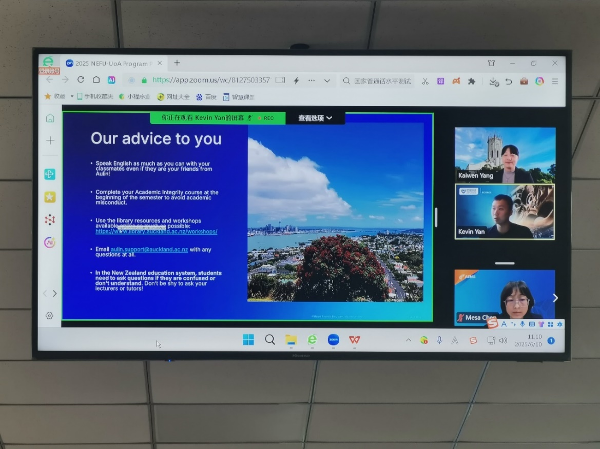 随着盛夏的来临,奥林学院2022级生物技术、化学、计算机科学与技术三个专业的学子赴新西兰奥克兰大学深造的旅程即将开启。为帮助同学们顺利过渡、自信启航,6月10日上午10:30,在奥林学院201教室精心组织了一场内容详实、互动热烈的行前指导会。本次活动特邀奥克兰大学跨国教育团队核心成员远程连线,奥林学院院长刘志明代表学院进行出国学生行前指导,国际项目中心团队全程护航,与即将远行的学子们共话未来,提供从落地安顿到学业、生活适应的全方位指引,充分体现了学院对出国学生海外学习生活的深度关怀与强大支持。