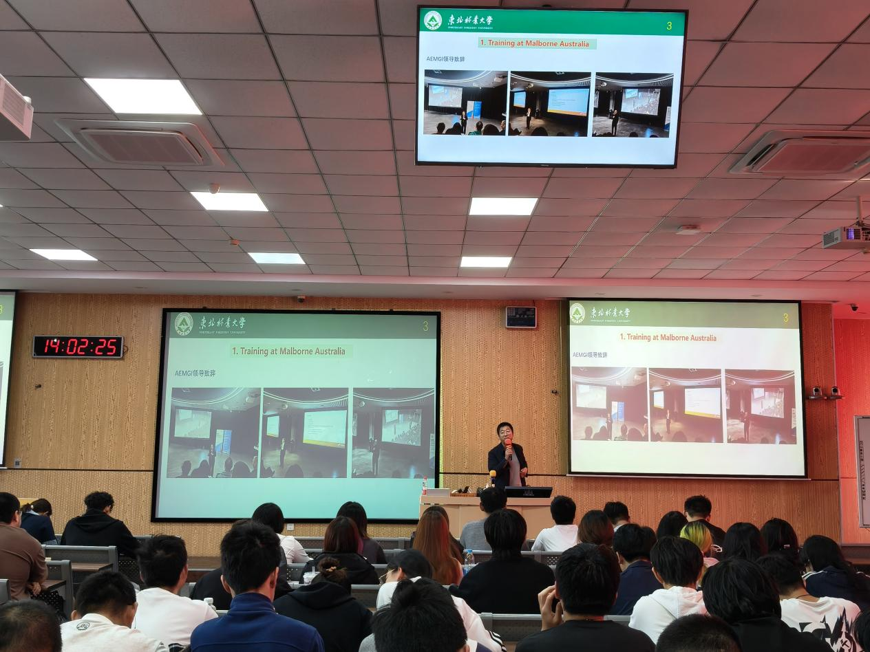 刘志国老师为奥林学院2023、2024级化学专业学生分享了在澳大利亚AIFE研究院的学习经历,指导学生分析英文摘要、讲解论文发表流程,最后分享奥大访学经历,展示课堂与实验室情况。