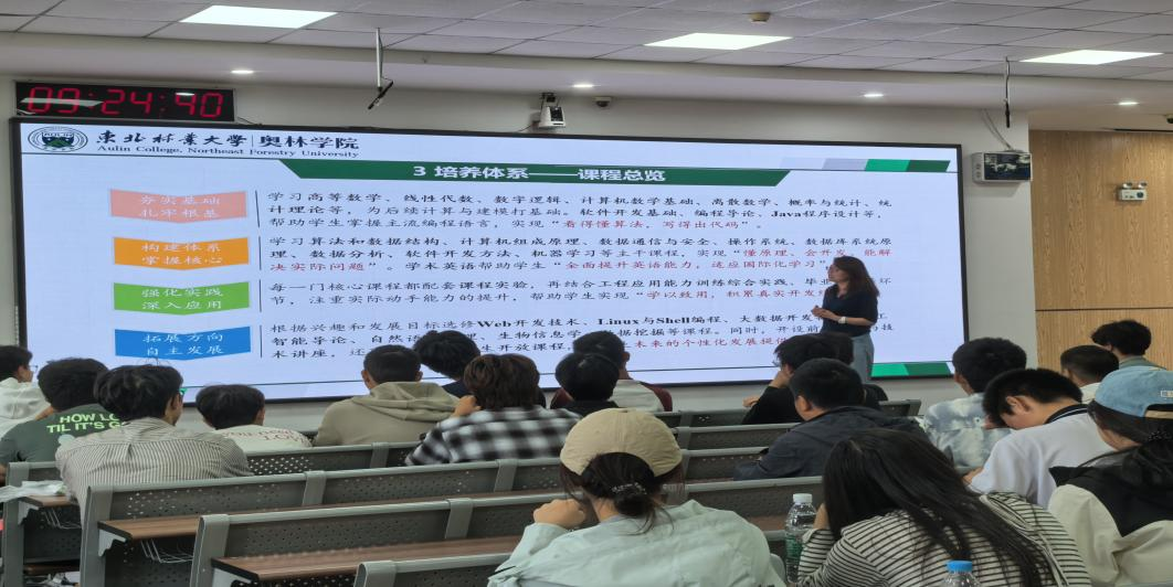 为帮助2025级计算机科学与技术专业新生深入认知专业内涵、科学规划大学生涯,学院于2025年9月28日组织开展“双新教育”系列活动之计算机科学与技术专业讲座。本次讲座特邀计算机与控制工程学院滕志霞老师担任主讲嘉宾,围绕“专业认知+学业规划”双维度展开,为新生打造了一场兼具深度与温度的成长启蒙课。
