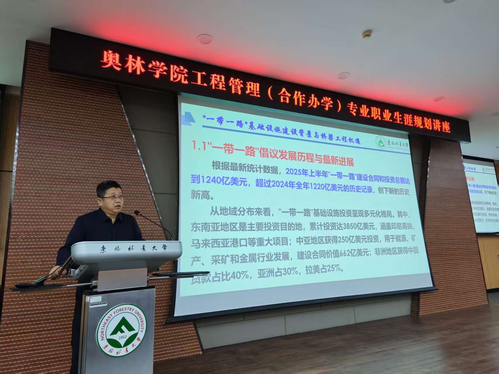 为帮助工程管理专业学生明确职业方向、提升就业竞争力,2025年11月12日,奥林学院邀请土木与交通学院王立峰教授,在学院101报告厅举办题为《“一带一路”背景下工程管理合作办学的实践探索与职业发展策略》的专题报告。