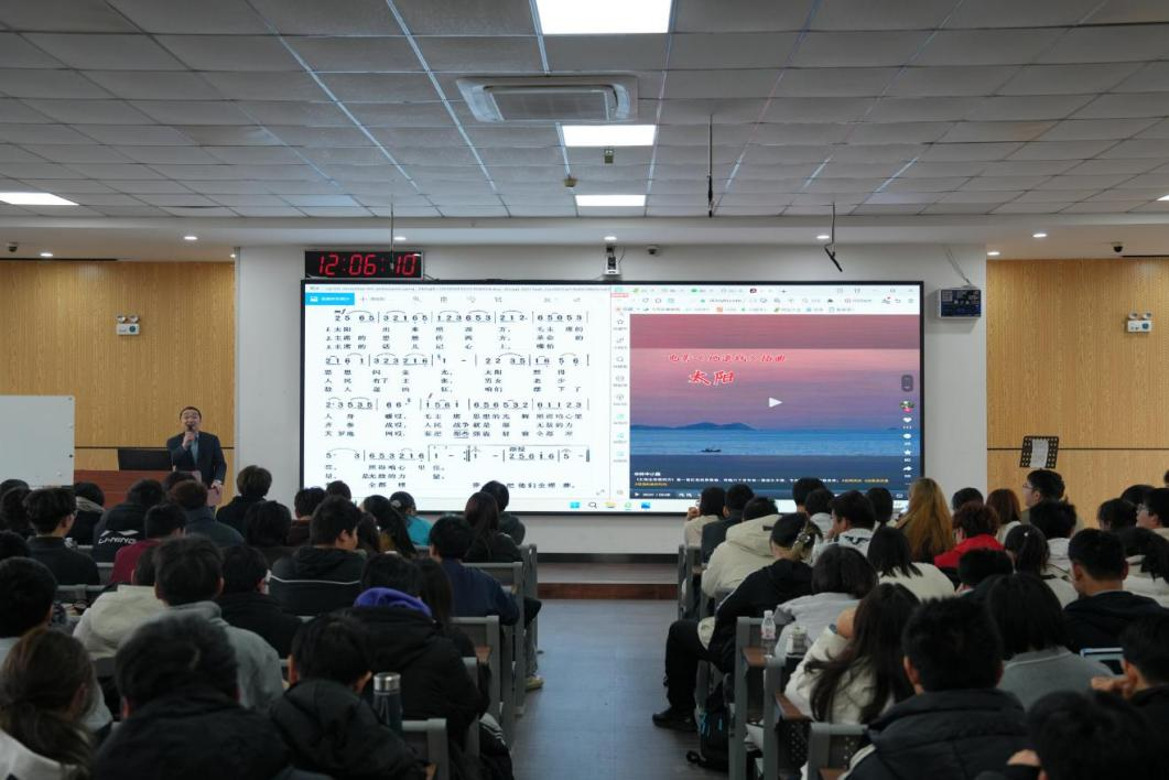 讲授《唱红歌颂党恩向未来》